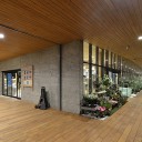 建物周囲を回遊できるデッキテラス、広い軒下空間など建物の内と外が混ざり合うプランとした。外装には浅間焼石張りや唐松羽目板張りなど、軽井沢に相応しい自然の建築素材を活かし南軽井沢の新たなランドマークを目指した。