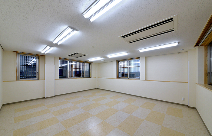 南側の道路正面には、まちに向けて情報を発信し、交流に寄与する展示ケースを三面計画。外装は鉄骨造に押出成形セメント版のワイドサイズを使用し、木製格子や下見板張りを設えた和風の外観構成とした。2階の屋根は切妻型の大屋根でまちなみの景観に配慮している。